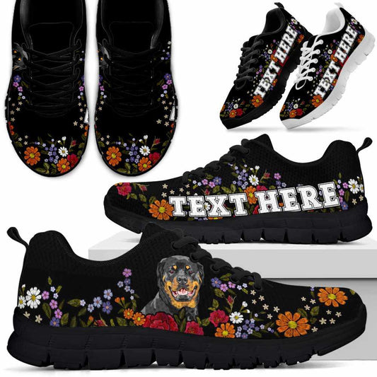• Custom Name Rottweiler Sneaker, Rottweiler Flower Floral Colorful Dog Lovers Sneakers Gym Running Shoes, Best Running Shoes