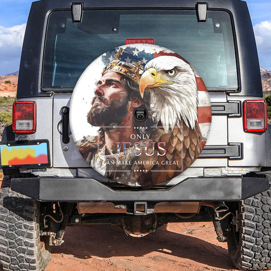 Jesus Christ Usa Flag Eagle Spare Tire Cover - Christian Tire Cover