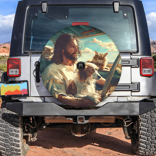 Jesus With Dog Cat Spare Tire Cover Car - Christian Tire Cover
