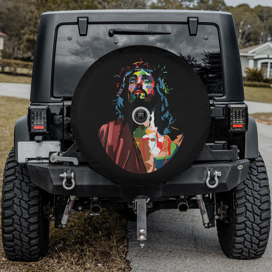 • King Jesus Christ Sweet Face Image Spare Tire Cover - Religious Christian Spare Tire Cover