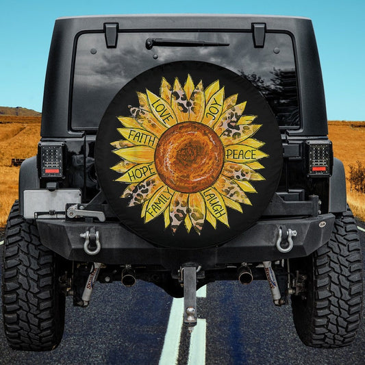 • Sunflower Butterfly Faith Hope Love Spare Tire Cover - Bible Verse Tire Cover