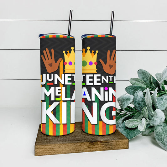 Juneteenth Melanin King - Juneteenth Tumbler - Stainless Steel Tumbler - 20 oz Skinny Tumbler - Tumbler For Cold Drinks - Ciaocustom