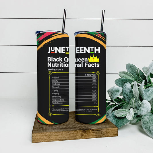 Juneteenth Black Queen Nutritional Facts - Juneteenth Tumbler - Stainless Steel Tumbler - 20 oz Skinny Tumbler - Tumbler For Cold Drinks - Ciaocustom