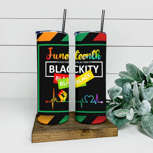 Jneteenth Blackity Black - Juneteenth Tumbler - Stainless Steel Tumbler - 20 oz Skinny Tumbler - Tumbler For Cold Drinks - Ciaocustom