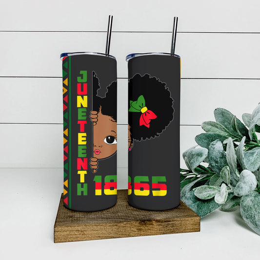 Juneteenth 1865 - Black Girl - Juneteenth Tumbler - Stainless Steel Tumbler - 20 oz Skinny Tumbler - Tumbler For Cold Drinks - Ciaocustom