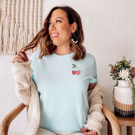 Cherry Hearts Badge Tee Shirts For Women - Christian Shirts for Women - Religious Tee Shirts