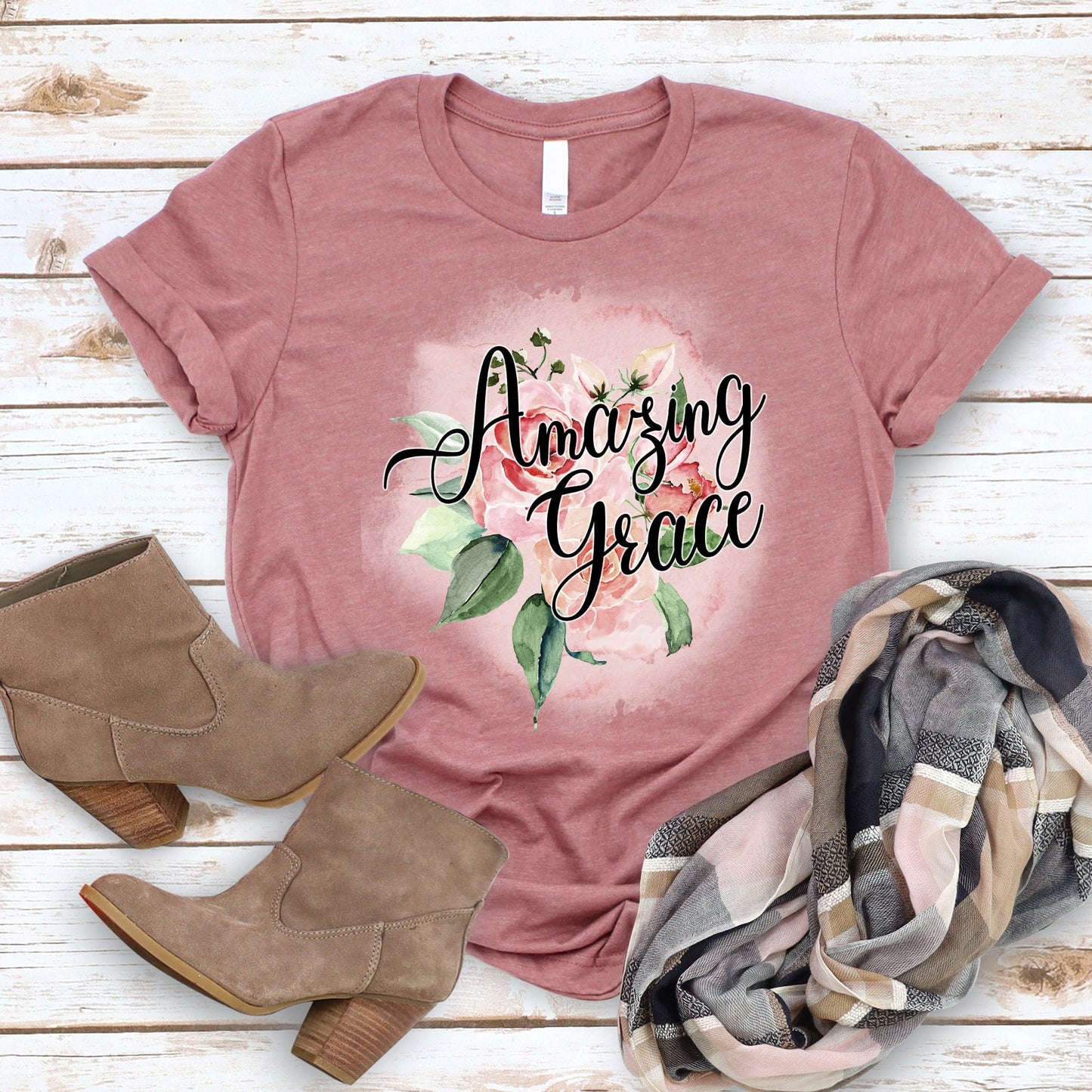 Amazing Grace Rose T Shirts For Women - Women's Christian T Shirts - Women's Religious Shirts