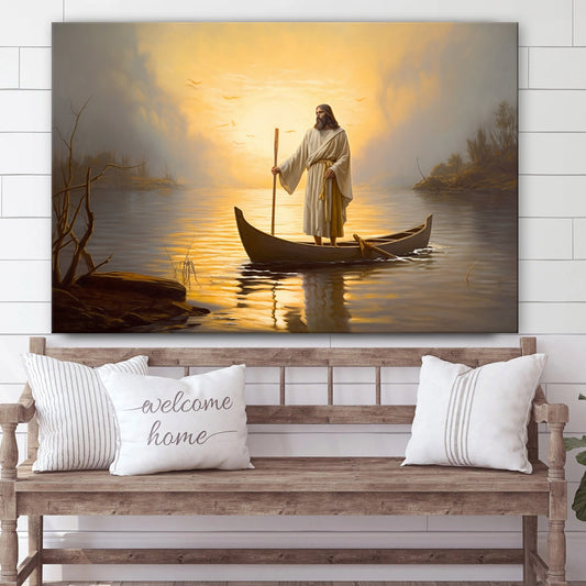 Jesus Holding A Paddle - Canvas Picture - Jesus Christ Canvas - Christian Wall Art