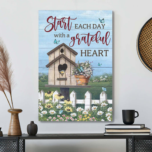 Bird House - Start Each Day With A Grateful Heart - Bible Verse Canvas - Scripture Canvas Wall Art - Ciaocustom