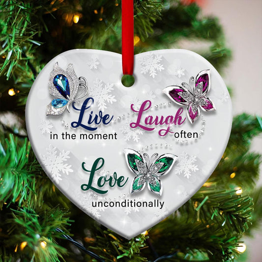 • Butterfly Live In The Moment Heart Ceramic Ornament - Christmas Ornament - Christmas Gift