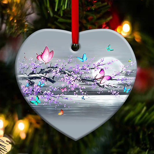 • Butterfly Moon Branch Heart Ceramic Ornament - Christmas Ornament - Christmas Gift