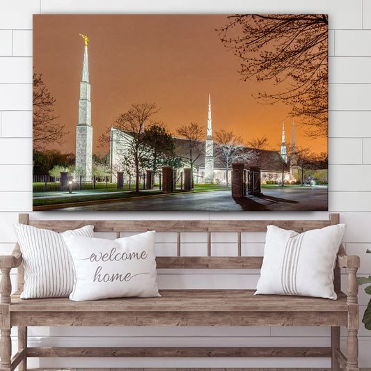 Chicago Temple Evening Glow Canvas Wall Art - Jesus Christ Picture - Canvas Christian Wall Art