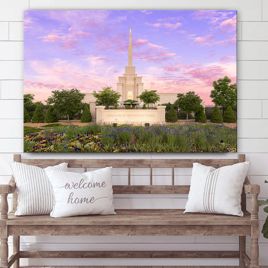 • Albuquerque Temple Vibrant Sunrise Canvas Wall Art - Jesus Christ Picture - Canvas Christian Wall Art