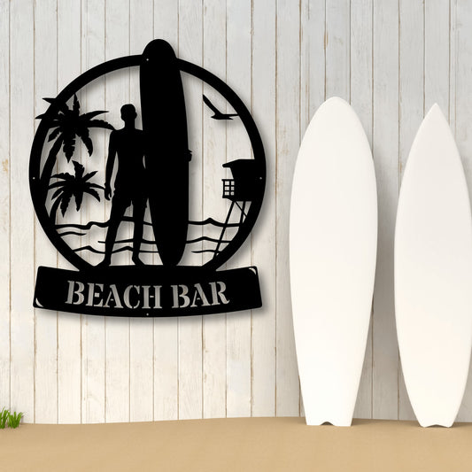 Custom Longboard Male Surfer Metal Sign - Outdoor Decor Metal Wall Art - Metal Signs For Home