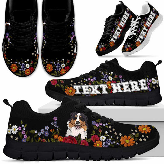 Custom Name Aussie Sneaker, Aussie Colorful Flower Floral Dog Lovers Sneakers Gym Running Shoes, Best Running Shoes