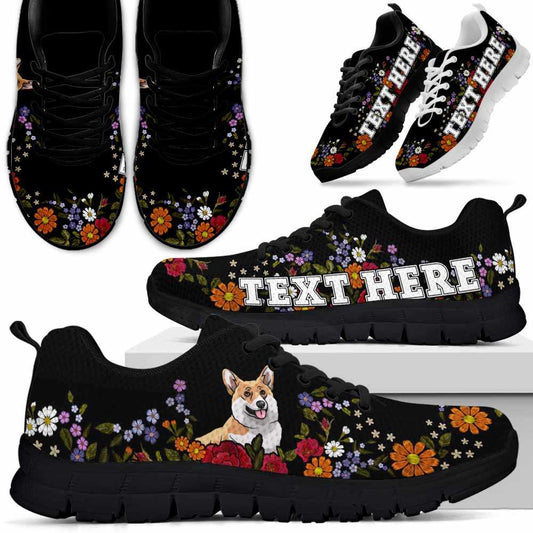 Custom Name Corgi Sneaker, Corgi Flower Floral Colorful Dog Lovers Sneakers Gym Running Shoes, Best Running Shoes