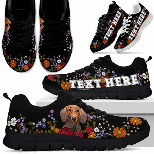 Custom Name Dachshund Sneaker, Dachshund Colorful Floral Flower Dog Lovers Sneakers Gym Running Shoes, Best Running Shoes