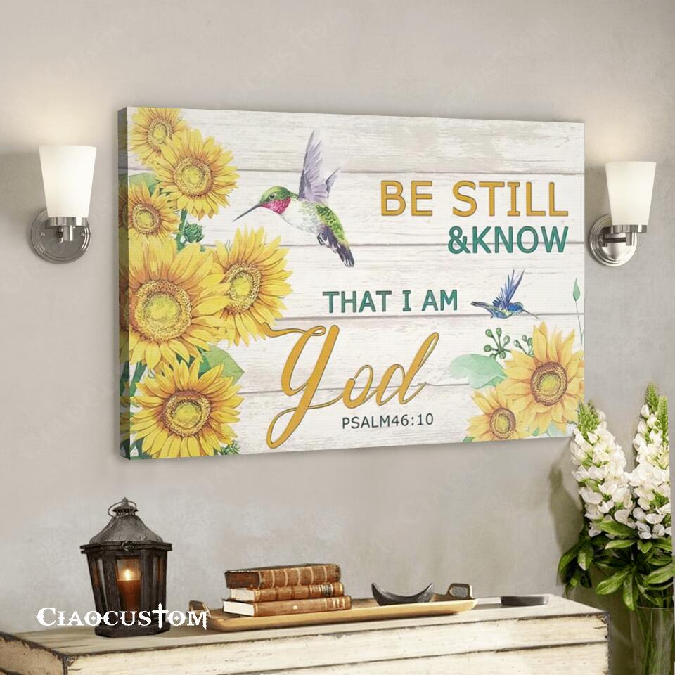 Be Still & Know That I Am God - Sunflower - Hummingbird - Jesus Canvas Wall Art - Bible Verse Canvas - Christian Canvas Wall Art - Ciaocustom