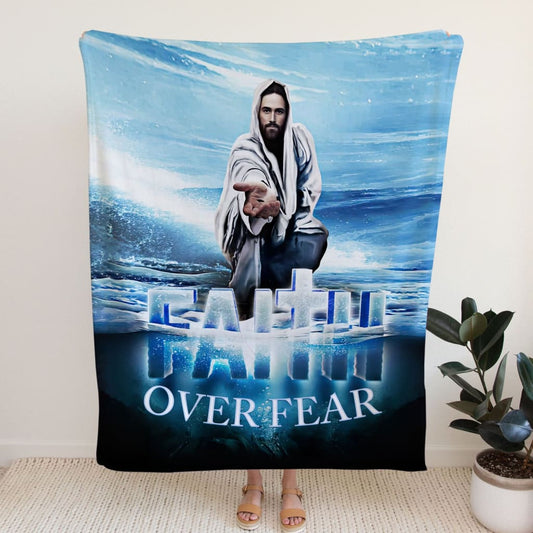 Faith Over Fear Jesus Hands Reaching Out Fleece Blanket - Christian Blanket - Bible Verse Blanket