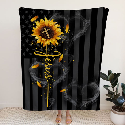 Jesus Cross Sunflower Fleece Blanket - Christian Blanket - Bible Verse Blanket
