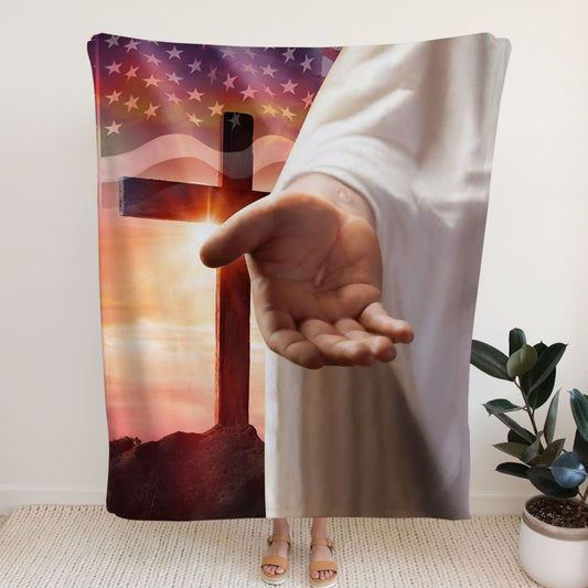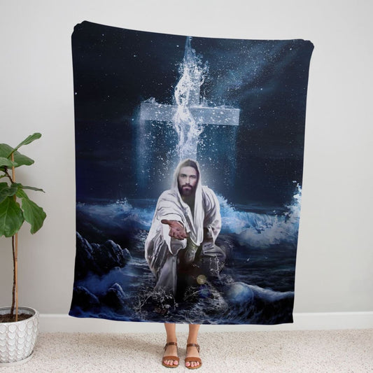Jesus Outstretched Hands Saves Fleece Blanket - Christian Blanket - Bible Verse Blanket