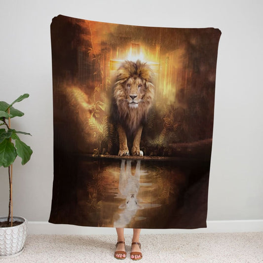 Lion And Lamb Jesus Lion Fleece Blanket - Christian Blanket - Bible Verse Blanket