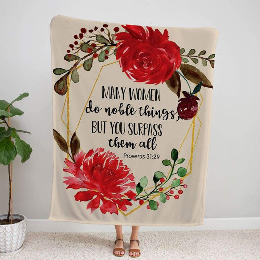 Proverbs 3129 Many Women Do Noble Things Fleece Blanket - Christian Blanket - Bible Verse Blanket