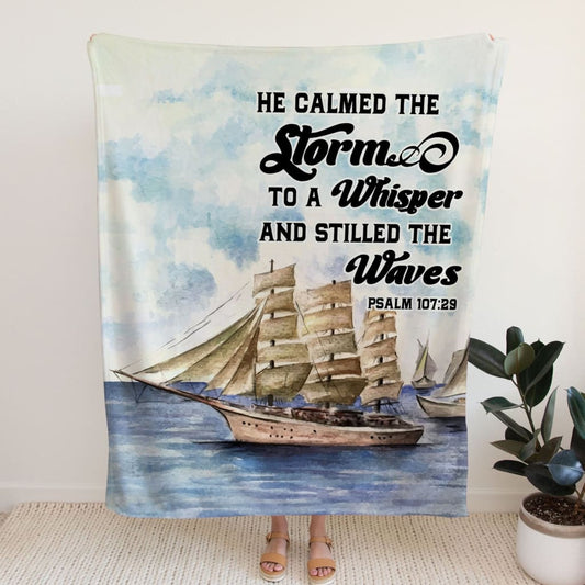 Psalm 10729 He Calmed The Storm To A Whisper And Stilled The Waves Fleece Blanket - Christian Blanket - Bible Verse Blanket