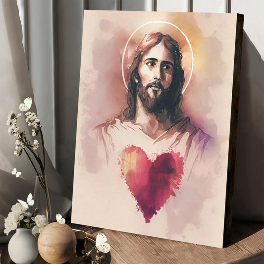 Christian Art Jesus Heart Jesus Portrait Jesus Painting - Jesus Canvas Art - Christian Wall Canvas
