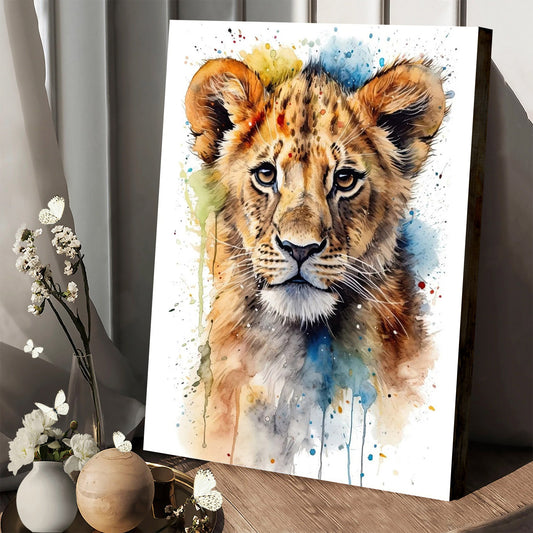 • Vibrant Watercolor Lion Cub - Jesus Christ Canvas - Christian Wall Art