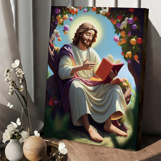 Every Day Jesus Reading The Bible Scripture Study Kids - Jesus Canvas Art - Christian Wall Art