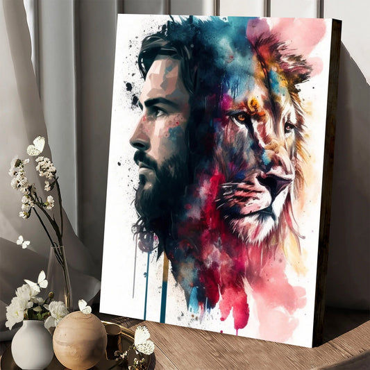 Heavenly Pairing Jesus And Lion Of Judah Watercolor - Jesus Canvas Art - Christian Wall Art