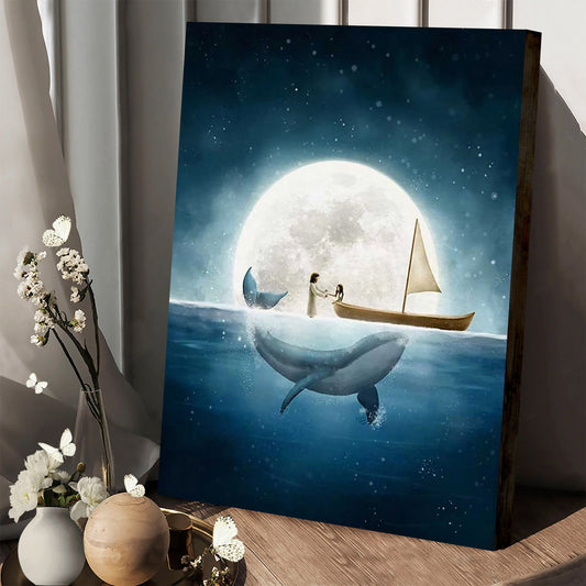 Jesus And Girl Boy Print Whale Painting Christian Nursery - Jesus Canvas Art - Christian Wall Art