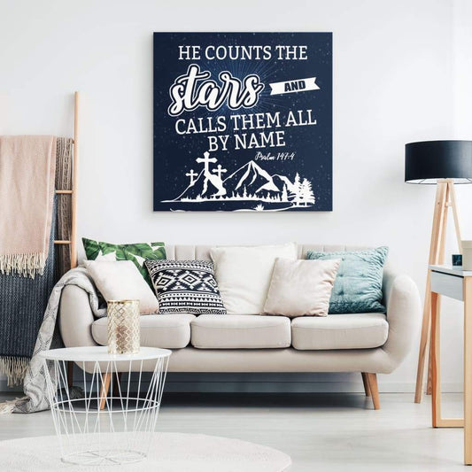 Psalm 1474 He Counts The Stars And Calls Them All By Name Canvas Wall Art - Bible Verse Wall Art - Christian Decor