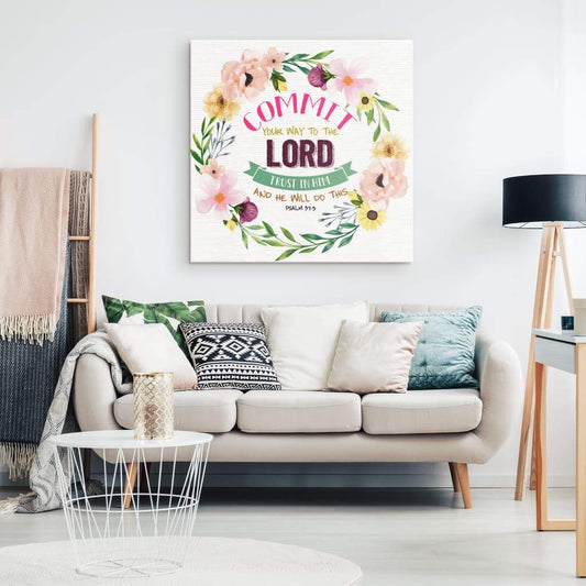 Psalm 375 Commit Your Way To The Lord Canvas Wall Art - Bible Verse Wall Art - Christian Decor