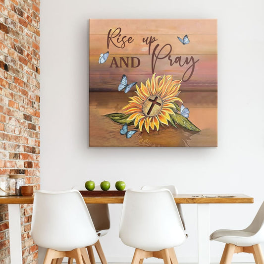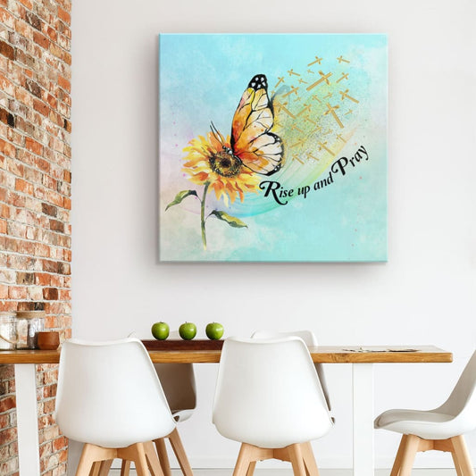 Rise Up And Pray Butterfly Sunflower Canvas Wall Art - Christian Wall Art - Religious Wall Decor