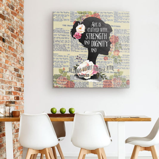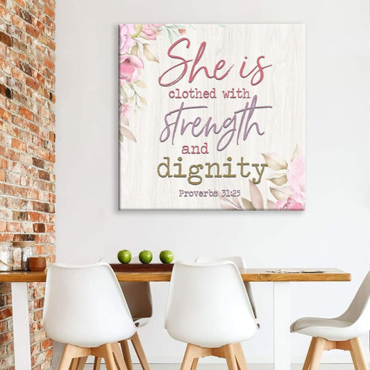 She Is Clothed With Strength And Dignity Wall Decor Canvas Wall Art - Bible Verse Wall Art - Christian Decor