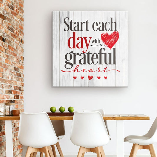 Start Each Day With A Grateful Heart Canvas Wall Art - Christian Wall Art - Religious Wall Decor
