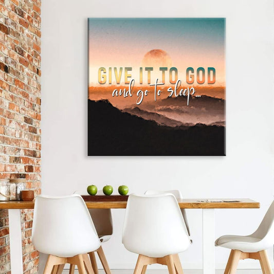Sunset Painting Give It To God And Go To Sleep Canvas Wall Art - Christian Wall Art - Religious Wall Decor