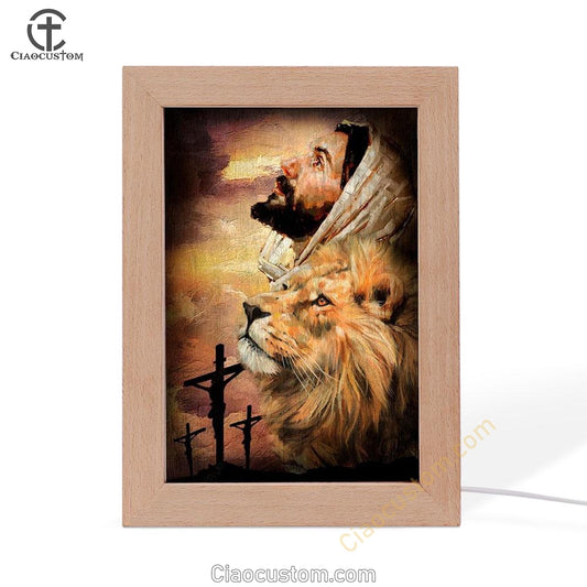Jesus Watercolor Lion Jesus On The Cross Frame Lamp