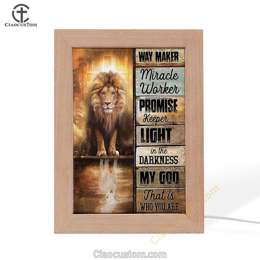 Jesus Way Maker Lion Of Judah Frame Lamp Prints - Bible Verse Wooden Lamp - Scripture Night Light