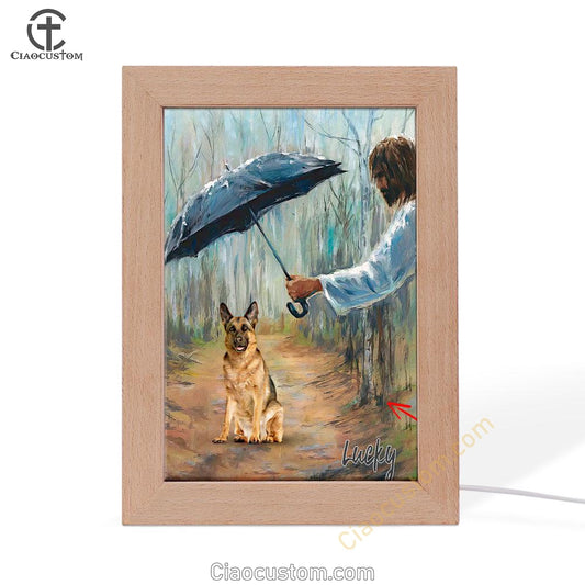 Jesus Covers Umbrella The Dog Custom Frame Lamp Wall Art - Personalized Pet Memorial Frame Lamp Art - Pet Memorial Gifts