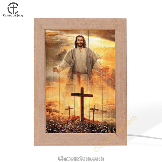 Jesus Cross, Three Wooden Crosses, Daisy Field, Heaven Sky Frame Lamp