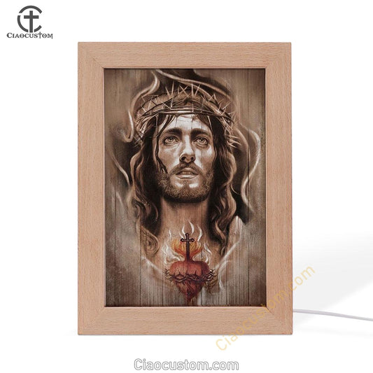 Jesus Crown Of Thorns Heart Cross Frame Lamp