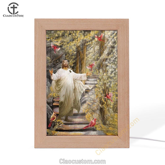 Jesus God With Open Arms Frame Lamp Pictures - Christian Wall Art - Jesus Frame Lamp Art