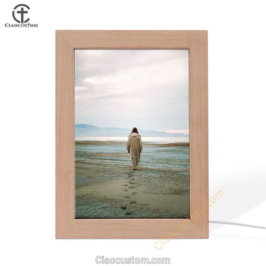 Jesus Footprints In The Sand Frame Lamp Pictures - Christian Wall Art - Jesus Frame Lamp Art