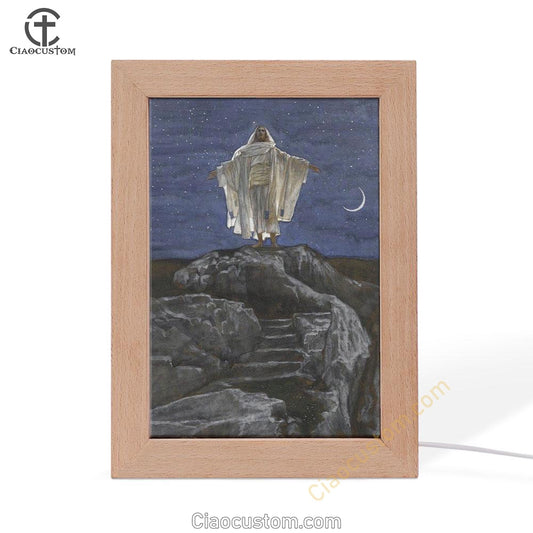 Jesus Goes Up Alone On A Mountain To Pray Frame Lamp Pictures - Christian Wall Art - Jesus Frame Lamp Art