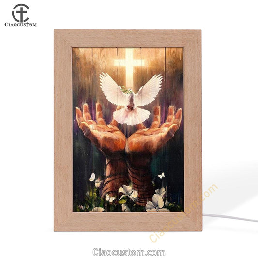 Jesus Hand, Dove Of Peace, Light Cross, White Flower Frame Lamp