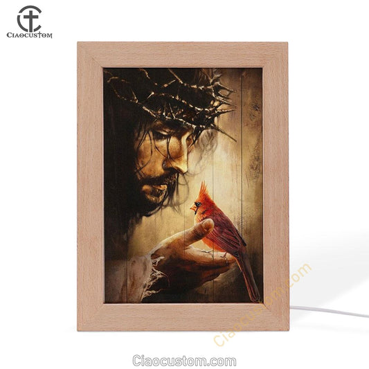 Jesus Drawing Cardinals Autumn Forest Frame Lamp