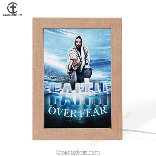 Jesus Hands Reaching Out Faith Over Fear Christian Frame Lamp Prints - Bible Verse Wooden Lamp - Scripture Night Light